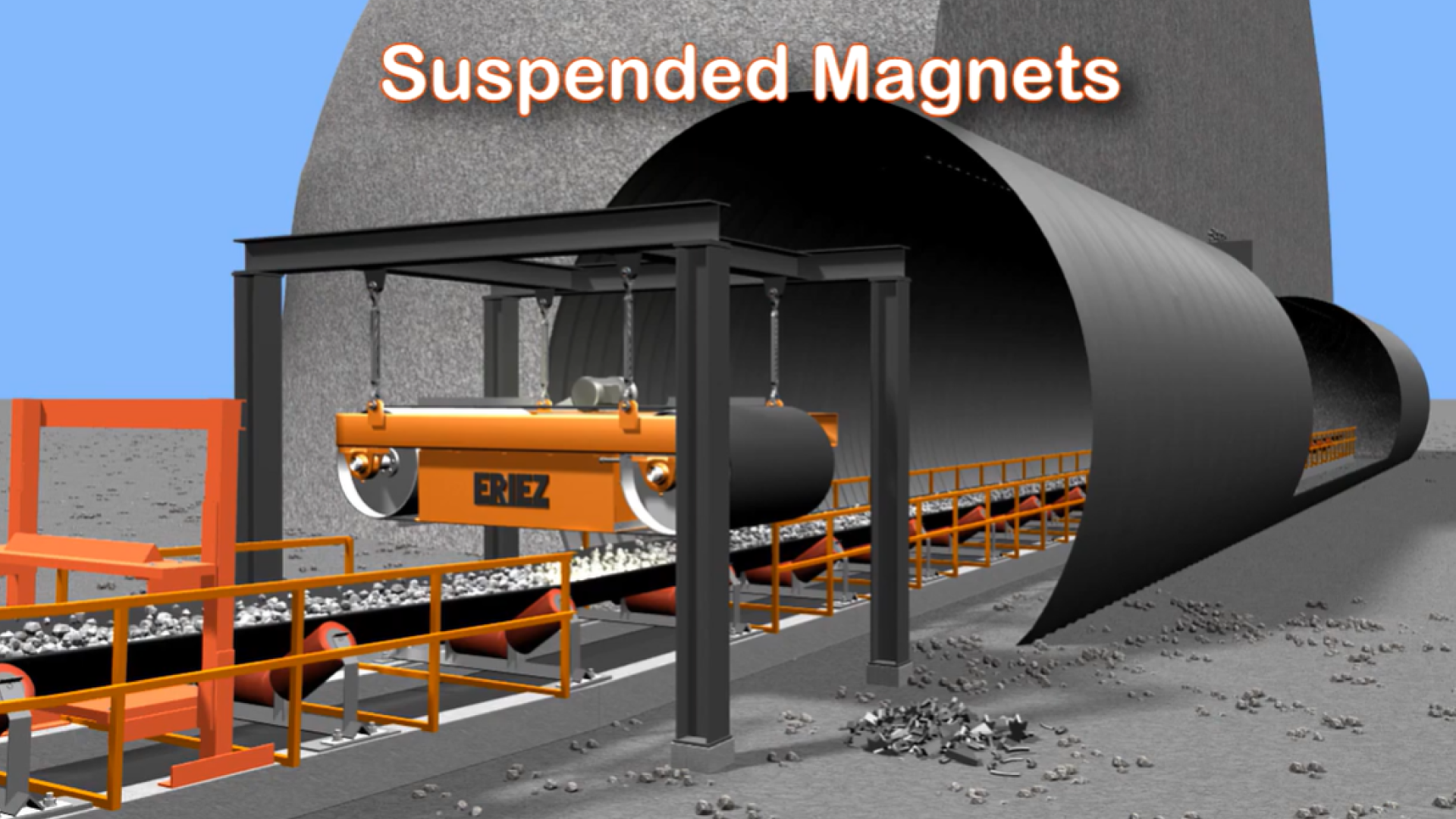 • Los imanes permanentes suspendidos son soluciones altamente efectivas para la eliminación de metales ferrosos no deseados en sistemas de transporte, especialmente sobre fajas transportadoras. Están diseñados para operar de manera confiable en una amplia gama de condiciones con alturas de suspensión hasta las 10”, ya sea con materiales húmedos o secos, finos o gruesos, y bajo distintos niveles de tonelaje. Esta versatilidad los convierte en una opción ideal para diversas industrias que requieren un proceso de separación magnética constante y eficiente.